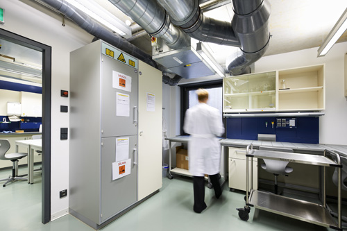 Spezielle Anlagen sind auch in Industrieunternehmen installierbar. Dies gilt ebenso für Chemiesäale in Schulen.