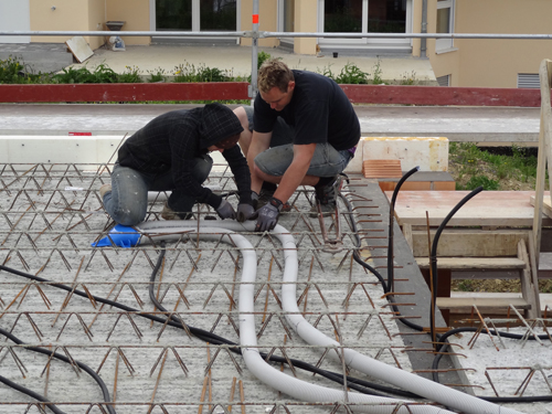 Verlegung des Belüftungssystems in der Betondecke eines Neubaues